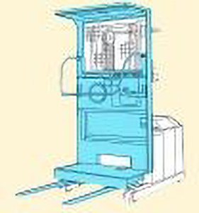 - 運転台が荷物と一緒に動くフォークリフトで倉庫内での荷物の出し入れに適しています。