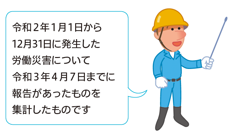 皆さんの現場でも日頃からリスクアセスメントをはじめとする安全活動を実施し、事故の発生防止に努められているのではないでしょうか。その結果、昨年度の労働災害はどうだったのでしょう?厚生労働省から発表された令和2年の労働災害発生状況について見ていくことにしましょう。