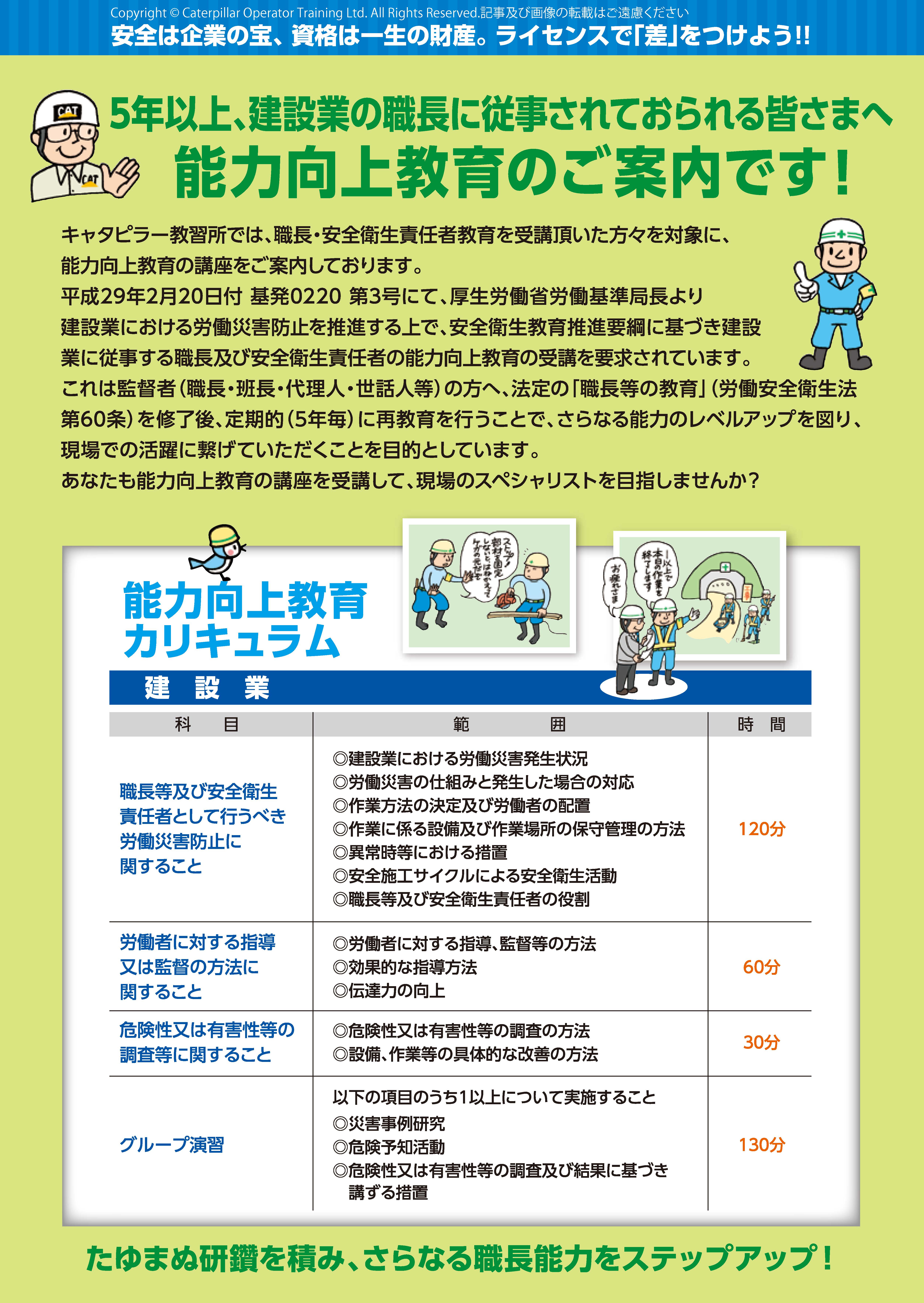- 1. 世界最大の建設機械メーカーキャタピラー社直系技能講習、特別教育、安全衛生教育教習機関ーキャタピラー教習所