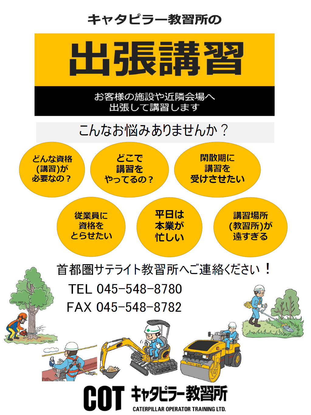 【首都圏サテライト】出張講習にうかがいます!(特別安全衛生教育)