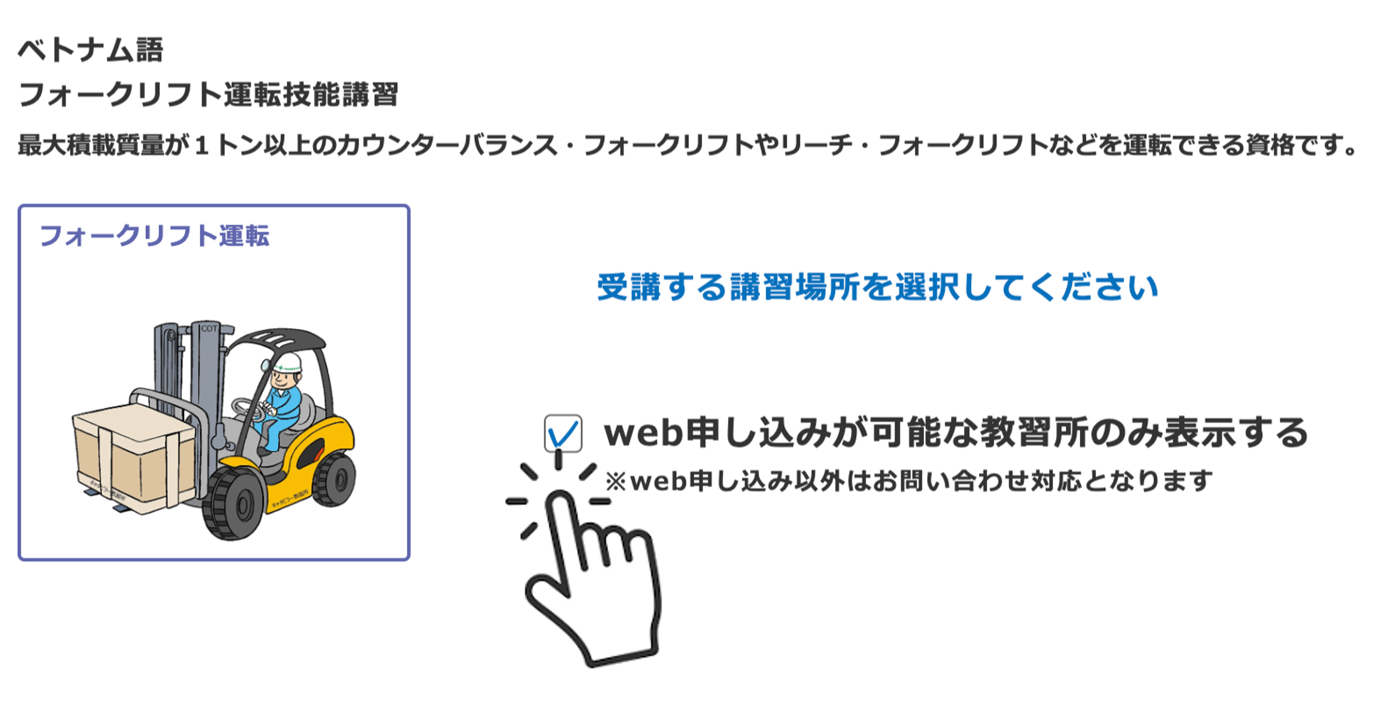 web.申込をしている教習所を探すには、「web申込は可能な教習所のみを表示するにチェックしてください
