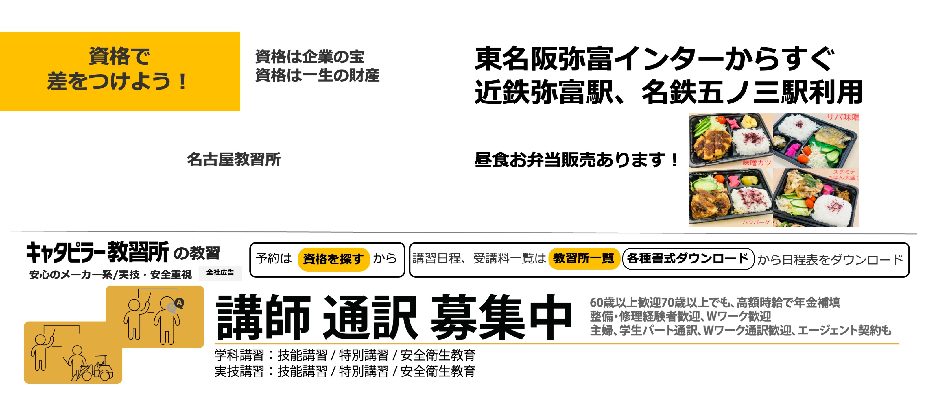 日本キャタピラー名古屋営業所と同居しています。東名阪自動車道弥富インターからは至近です。 広い駐車場を完備しており、ベトナム語や中国語の外国語講習も実施しておりまので、お気軽にお問い合わせください