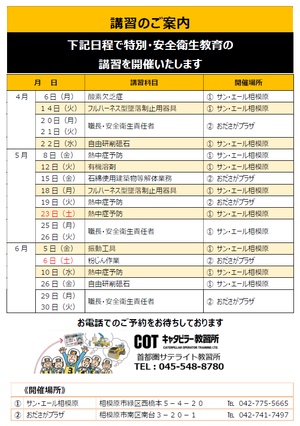 【首都圏サテライト教習所】「講習日程」のご案内